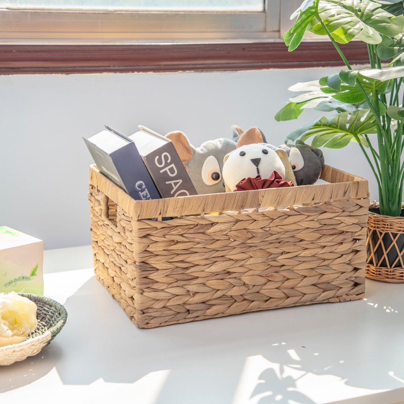 Braided Natural Water Hyacinth Rectangular Storage Baskets with Internal Handle (Trumpet)
