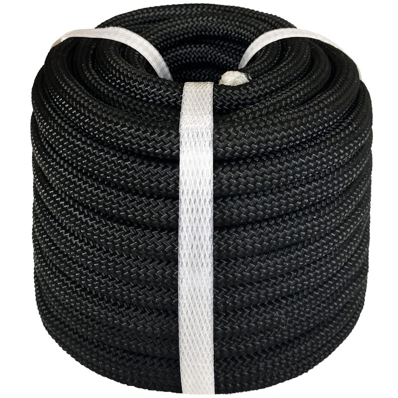 Braided Polyester Arborist Rope 1/2 inch x 50 feet Low Stretch Black Rope - High UV and Abrasion Resistance, Heavy Duty Rope for Pulling Camping Sailing Climbing Swing Tree Work
