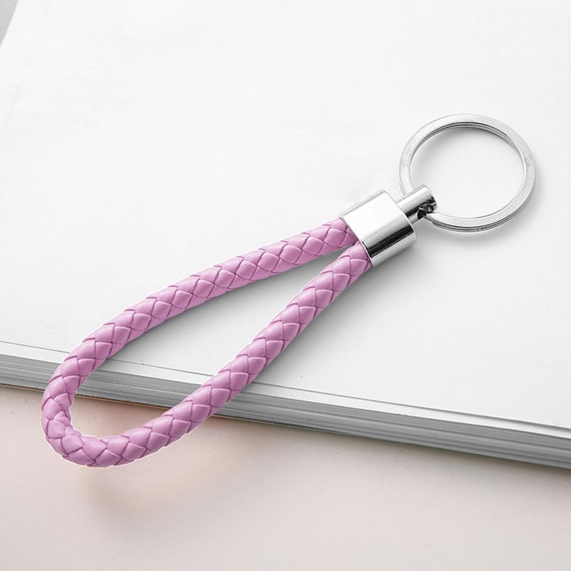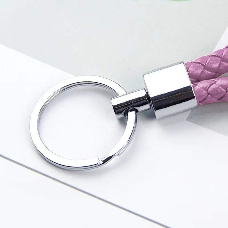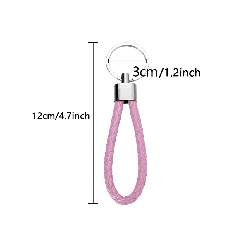 Braided PU Leather Keychains Car Keyring Key Chain Ring for Men or Women Button (Pink)