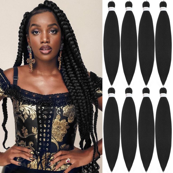 Braiding Hair 24 Inch 8 Pack Pre Stretched Braiding Hair Natural Black Professional Synthetic Prestretched Crochet Braids Hair Extension Itch Free Hot Water Setting Yaki Texture (26Inch,1B)
