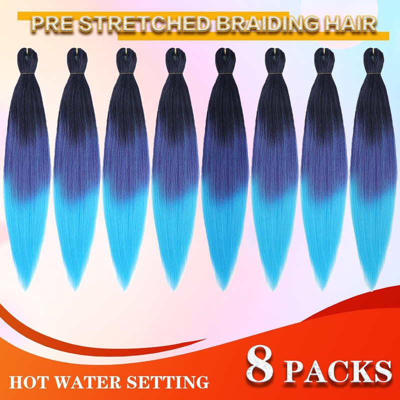 Braiding Hair Braids Hair Extensions, 26Inches Pre Stretched Braiding Hair Colour Braiding Hair 8Pcs Hair Extensions for Women Braids (Black Violet Light Blue,26"#9)