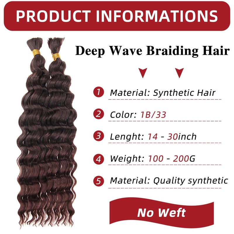 - Hair Material: The deep wave bulk synthetic hair wet and wavy is available in a 14-30 inch length, providing ample volume and styling flexibility, no smell, no itch ,can be bleached, dyed, permed and styled.