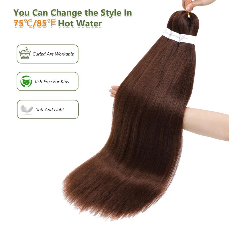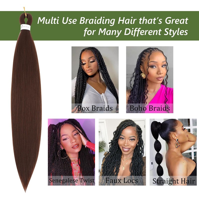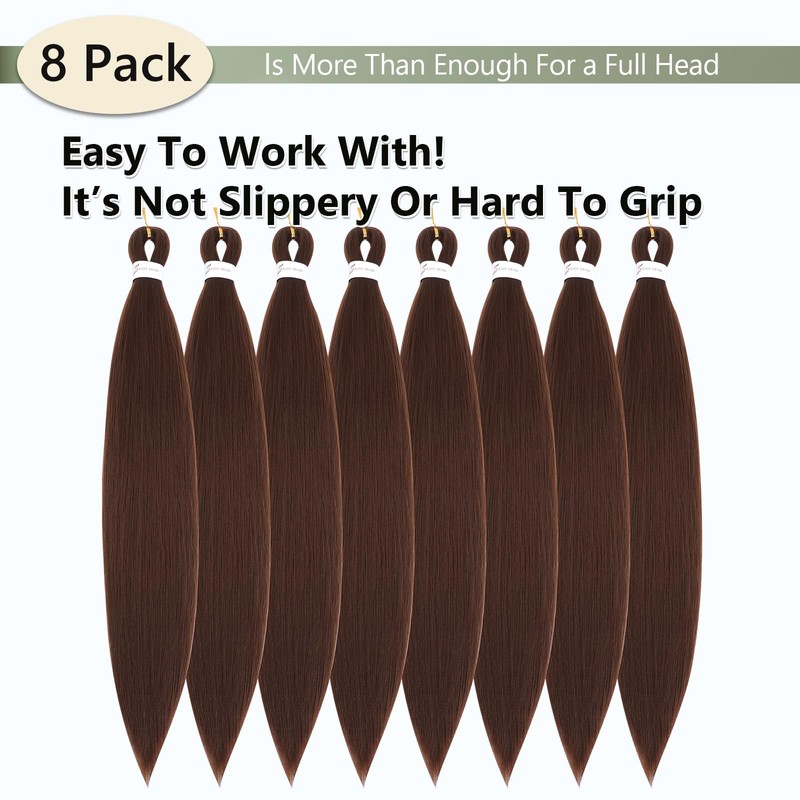 Braiding Hair Pre Stretched 26 Inch 8 Packs Long Braiding Hair Extension Pre Stretched Braiding Hair Professional Synthetic Hair For Braiding Crochet Twist Braids Soft Yaki Texture(26",#30-8P)