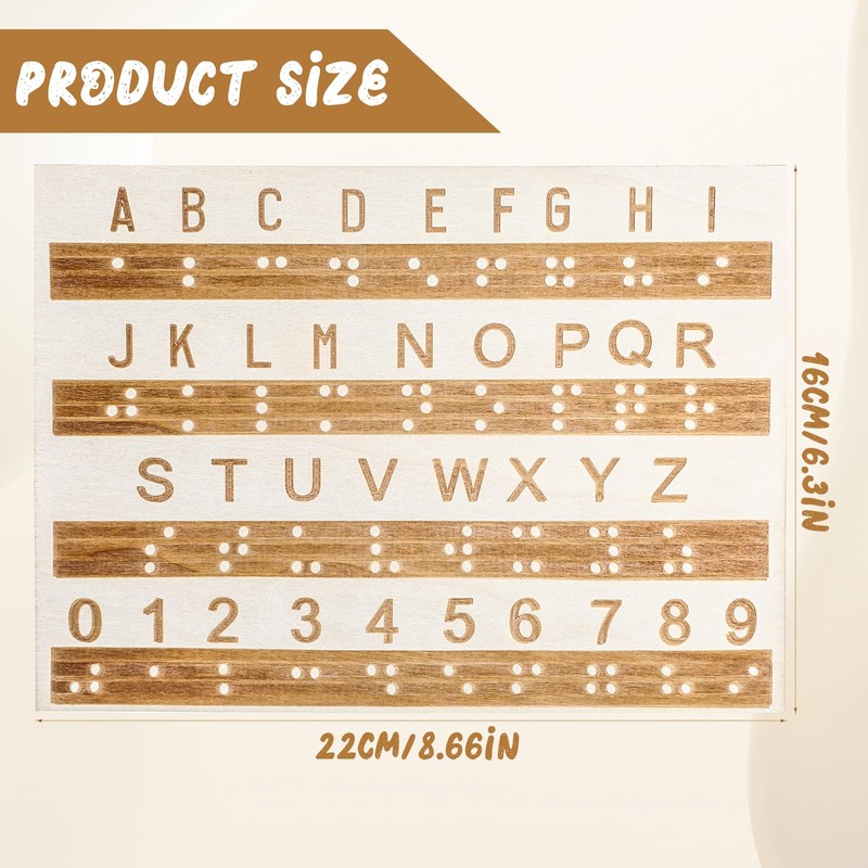 - 【Convenient and Practical】The braille alphabet board compact and lightweight for easy carrying. Its wooden construction ensures durability, allowing users to learn Braille anytime, anywhere, whether in classrooms, homes, or escape rooms
