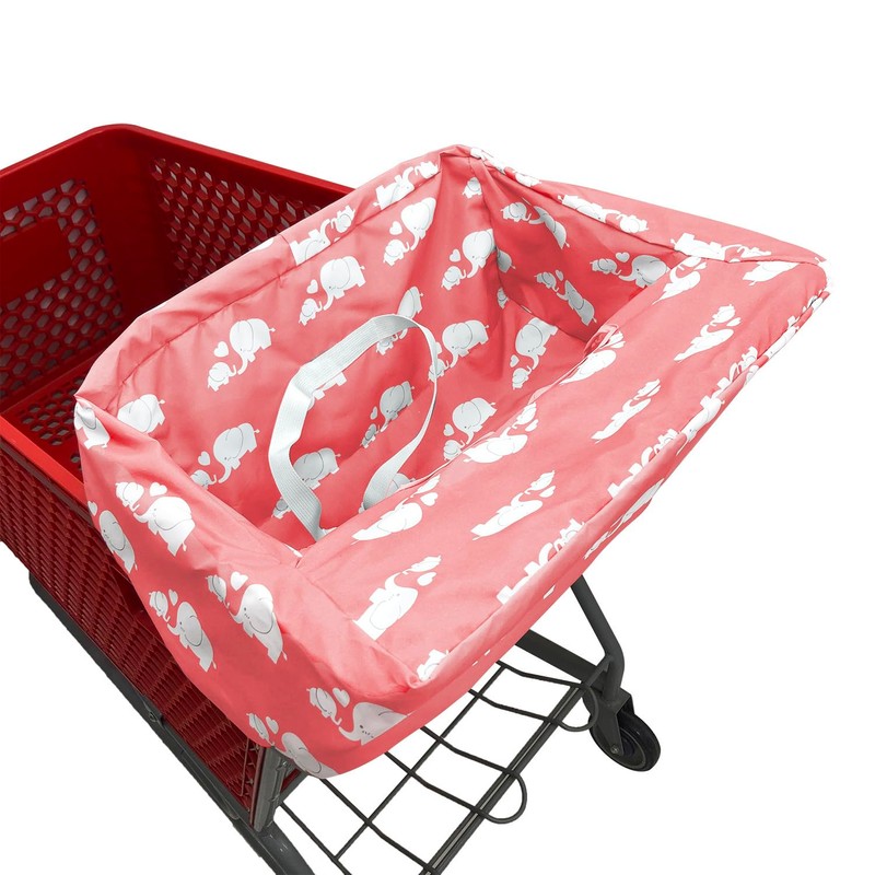 Brain Architect Child Portable Shopping Cart Cover | High Chair and Grocery Cart Covers for Babies, Kids, Infants & Toddlers ✮ Includes Free Carry Bag ✮ (Simple Pink Elephant)