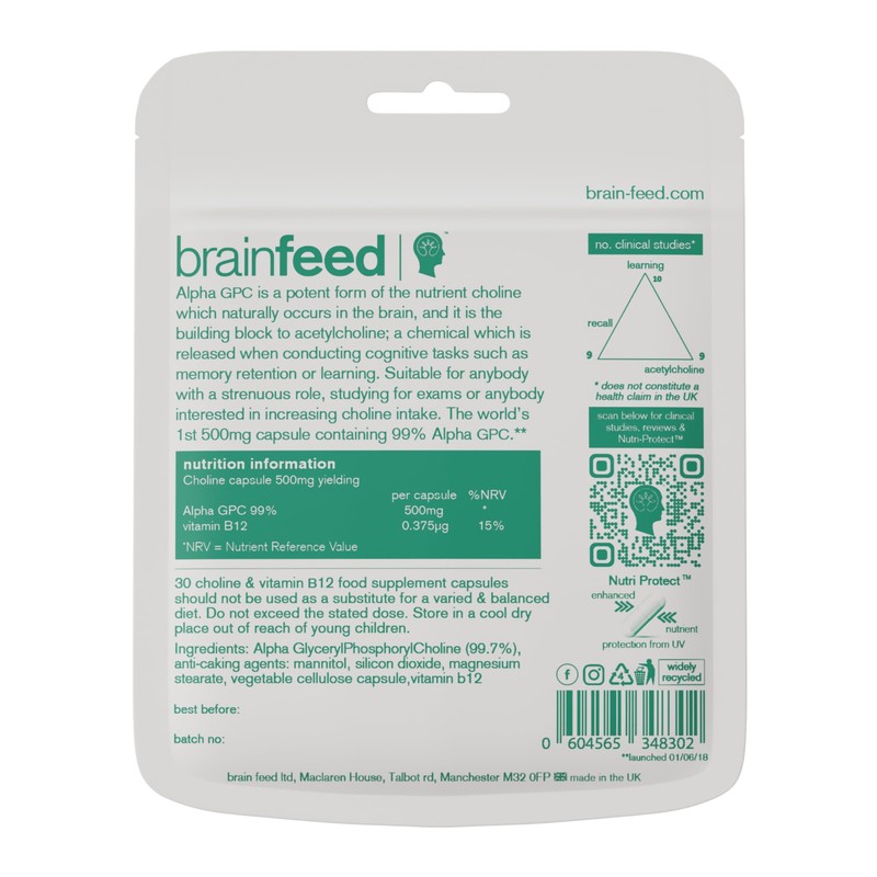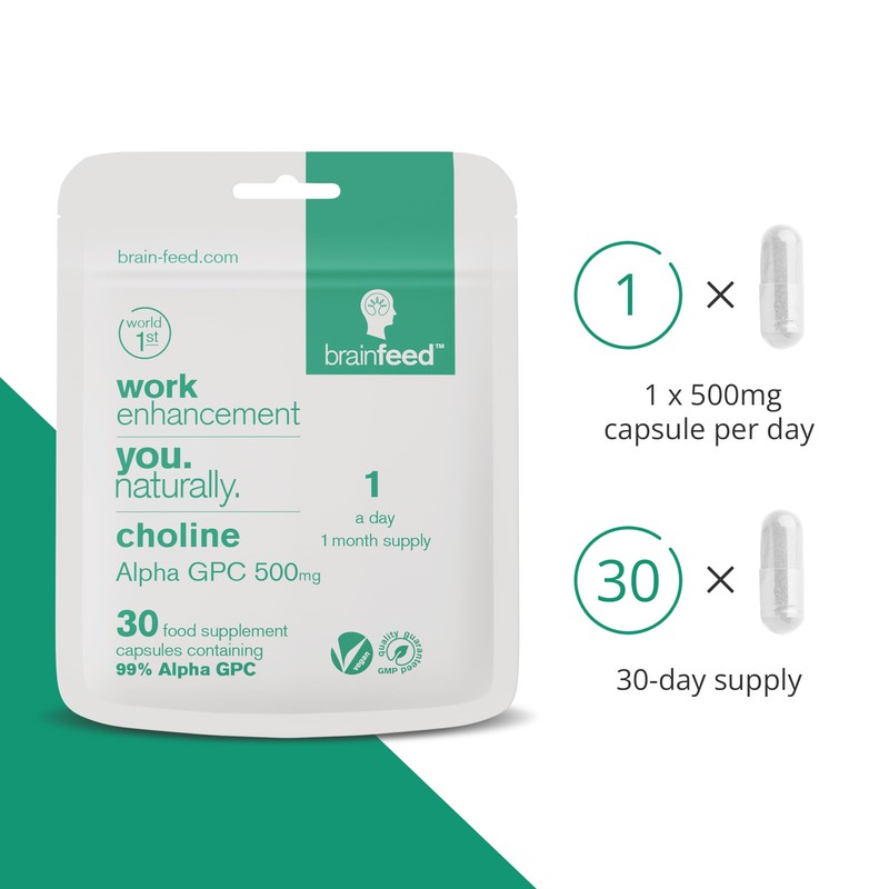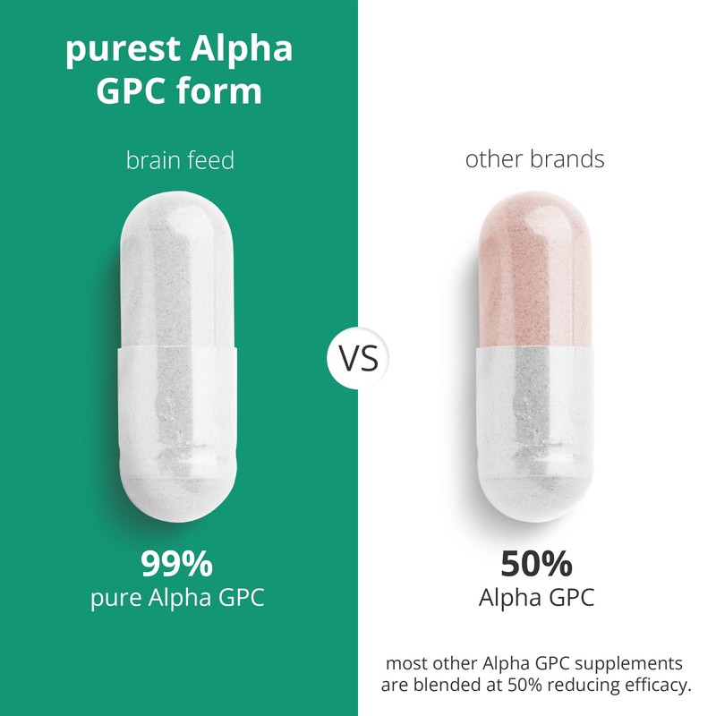 brain feed Alpha GPC Capsules (30) | 1-a-Day | 99.7% Alpha GPC Choline Supplement | 500mg | Nootropic Alpha Brain Supports Memory & Cognition | Acetylcholine Supplement