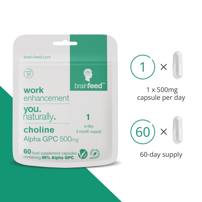 brain feed Alpha GPC Capsules (60) | 1-a-Day | 99.7%* Alpha GPC Choline Supplement | 500mg | Nootropic Alpha Brain Supports Memory & Cognition | Acetylcholine Supplement