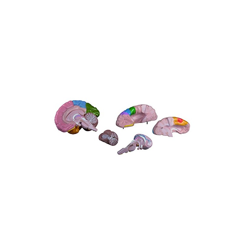 This life size model of a brain is elaborately painted and can be divided into left and right brain half. In addition you to wear it up, wear it down, the left half of the brain is expanding further into 4 parts can be dismantled. The right model side shows coloured label the regions of the brain, on the left hand side are the centres of the brain Colour coded.