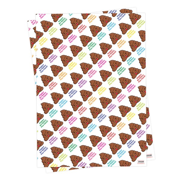 Brainbox Candy - 2 Sheets of Funny 'Poo Face' Gift Wrap - Birthday Gift Wrap for Anyone with A Cheeky Sense of Humour - Folded Quality Wrap