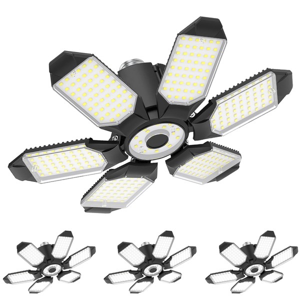 BRAINIAC 100W LED Garage Light Bulb, Deformable Garage Lighting Led with 6 Adjustable Panels, E26/E27 Screw-in Shop Lights for Basement Workshop Corridor Stadium - 4Pack