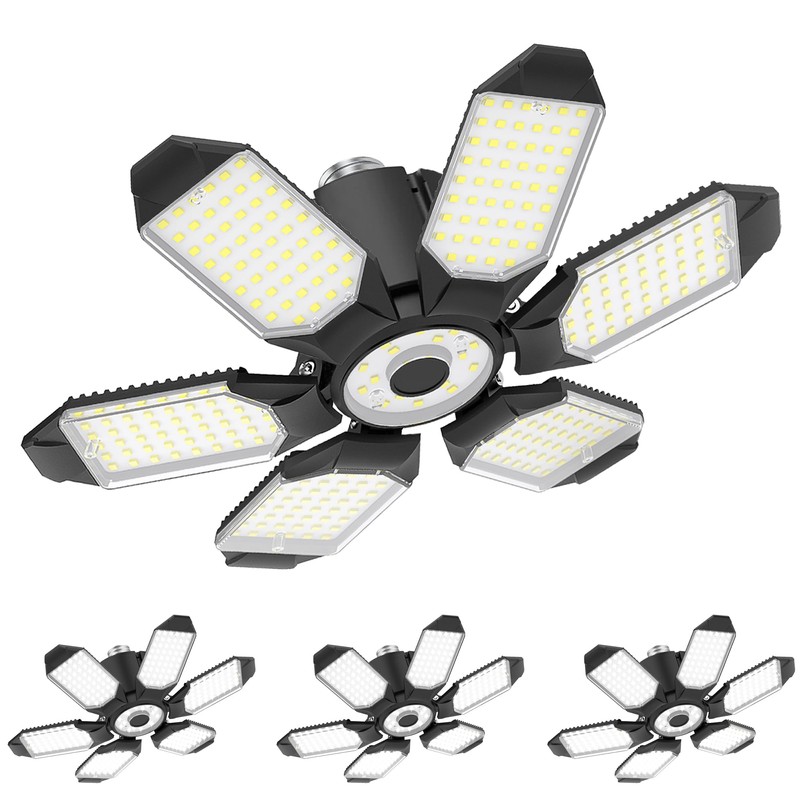 - 💡【Deformable Design】: Garage lights ceiling led with 5 adjustable light panels, area that can be adjusted from 0° to 90° according to your needs. With its unique wide-angle design, you can angle the LEDs to shine where you want them, and the maximum coverage angle can reach 360°, ensuring no dark areas in your garage.