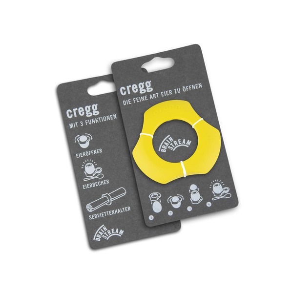 You love cooked eggs? But you always get angry when you have to remove the shells? Beating the eggs don t help you, since the shell cannot be separated from the skin? Thenn Cregg is perfect for you. As simple as the name, Cregg has also a very simple principle. Just take your cooked egg, press a bit Cregg on the egg and then turn it. The three blades of Cregg will make a small cut on the shell, so that you can remove it and enjoy your egg. But the possibilities of Cregg do not have finished, since it is a 3 in 1: eggshell cutter, egg bowl and napkin ring. At first, Cregg lays on the table as an innovative napkin ring. Then, it can become a quick and practical eggshell cutter and, finally it can function as a stylish egg bowl. Together with the PiepEi by Brainstream, Cregg is a wonderful present and a must for each egg fan! Colour: yellow Material: high quality plastics The set contains 2 eggshell cutters Measures: Width: 7 cm Height: 1.2 cm Diameter of the upper opening: 3.4 cm Diameter of the lower opening: 4.5 cm Brainstream article number: A001279 , Pack contains:1 Brainstream Cregg Eggshell Cutter, Egg Bowl & Napkin Ring, Yellow
