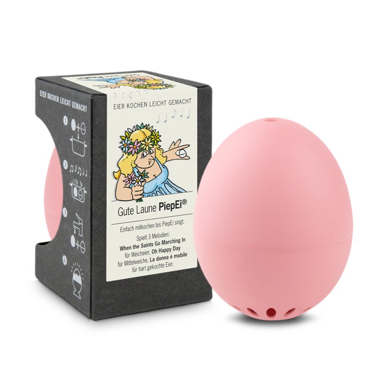 • Boils together with the eggs in your pot, and once your egg has reached a desired degree of firmness, PiepEi will play a tune!