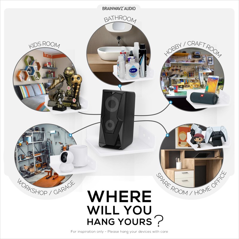 - CORNER SMALL FLOATING SHELVES: Easily place your security cameras, speakers, Bluetooth speakers, baby monitors, plants, books and much more in any unused corner of your room. Perfect for SONOS, JBL & Others Speakers, Google Nest Cam, Wyze Cam, Ring, Arlo Pro Pro3, DXR-8 Baby Monitor, Google Home Mini, Sonos, Smart Speaker and much more.