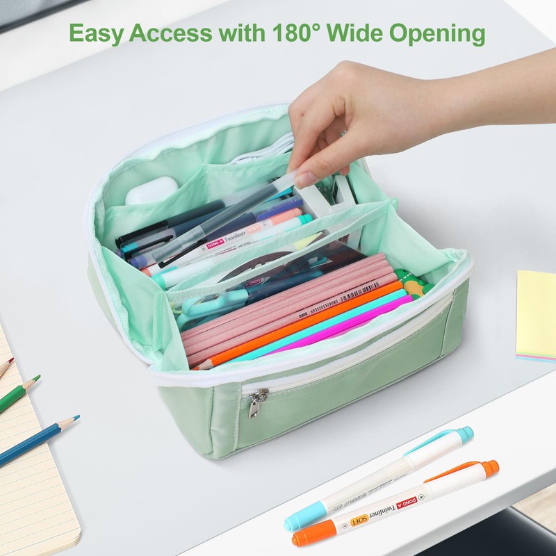 - Grab What You Need Fast: The wide-opening design of this aesthetic pen case lets you see and reach inside instantly; No more digging for your favorite pencil during art class or study time.