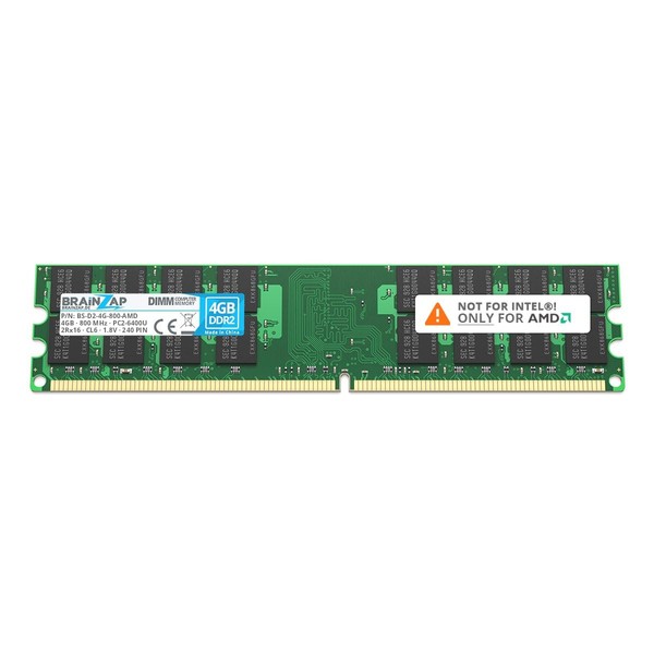 BRAINZAP 4GB DDR2 RAM DIMM PC2-6400U 2Rx16 800 MHz 1.8V CL6 AMD PC Memory Module