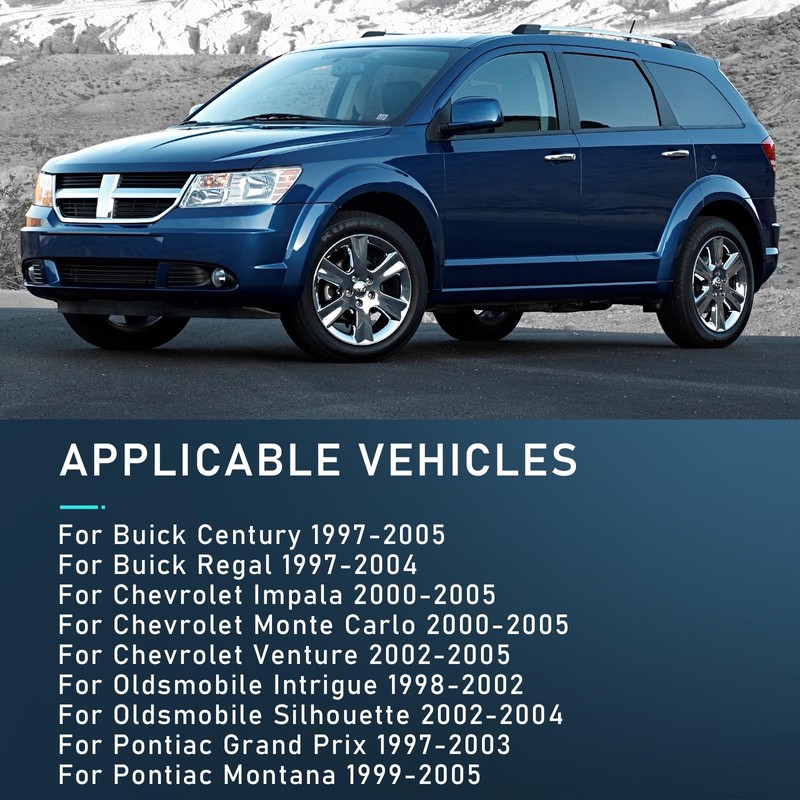 - [MAKES & MODELS] : Replacement for 2004-2005 for Buick Century,1997-2004 for Buick Regal,2000-2005 for Chevrolet Impala,2000-2005 for Chevrolet Monte Carlo,2002-2004 for Chevrolet Venture,1998-2002 for Oldsmobile Intrigue,2002-2004 for Oldsmobile Silhouette,1997-2003 for Pontiac Grand Prix,2002-2004 for Pontiac Montana