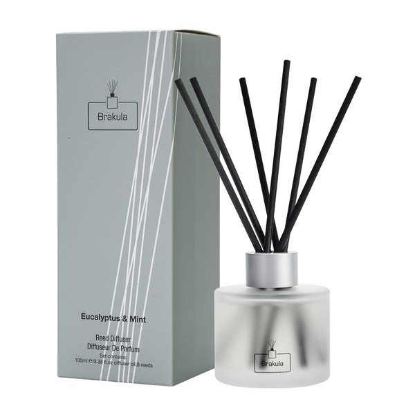 Brakula Eucalyptus & Mint Reed Diffuser Set, Home Fragrance Oil Diffuser with 8 Sticks for Room Decor, 3.4 oz/100 ml