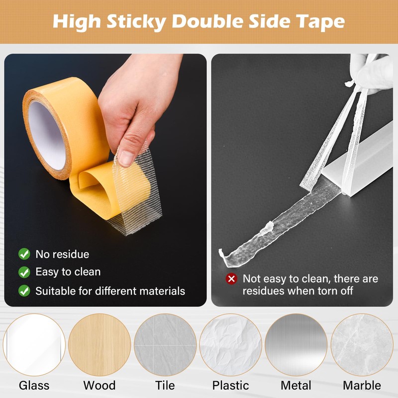 - Strong Adhesion:The double sided mounting tape is made of PE and extra strength fabric cloth mesh, coated with super sticky clear glue under industrial standard, the adhesion is 3 times of the regular adhesive tape.
