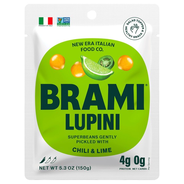 BRAMI Lupini Beans Snack, Chili & Lime, 7g Plant Based Protein, 0g Net Carbs, Vegan, Vegetarian, Keto, Mediterranean Diet, Non Perishable, 5.3 oz