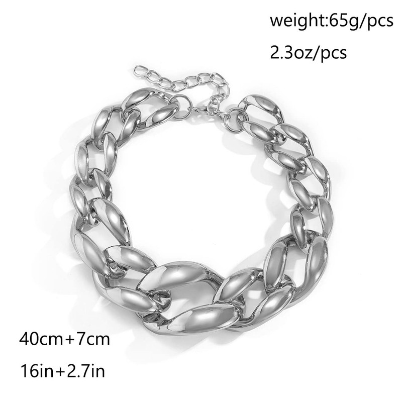 Bramian Chunky Chain Neck Necklace Hip Hop Punk Necklaces Exaggerated Single Layer Necklace Jewellery Adjustable for Women and Girls (Silver)