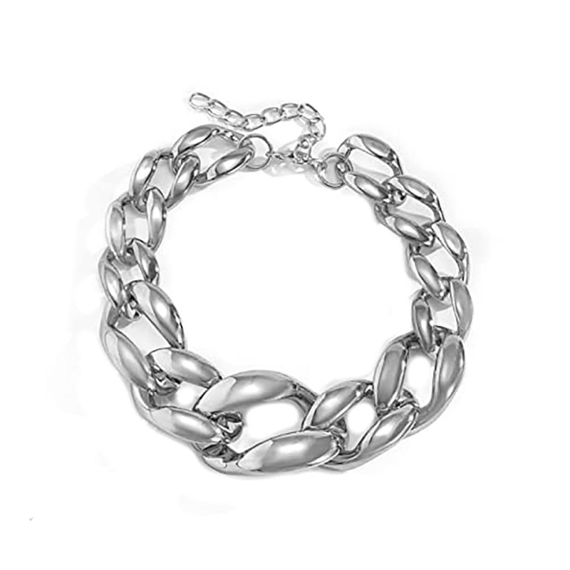 Bramian Chunky Chain Neck Necklace Hip Hop Punk Necklaces Exaggerated Single Layer Necklace Jewellery Adjustable for Women and Girls (Silver)