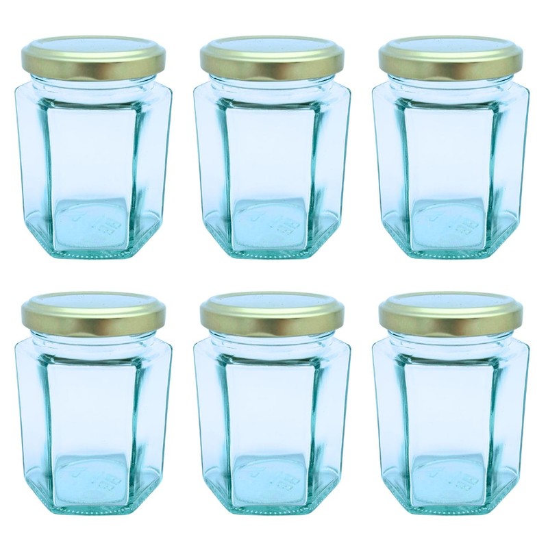 Bramley & Sage 190ml 8oz Hexagonal Jam Jar with Gold Twist-Off Lid (Set of 6)