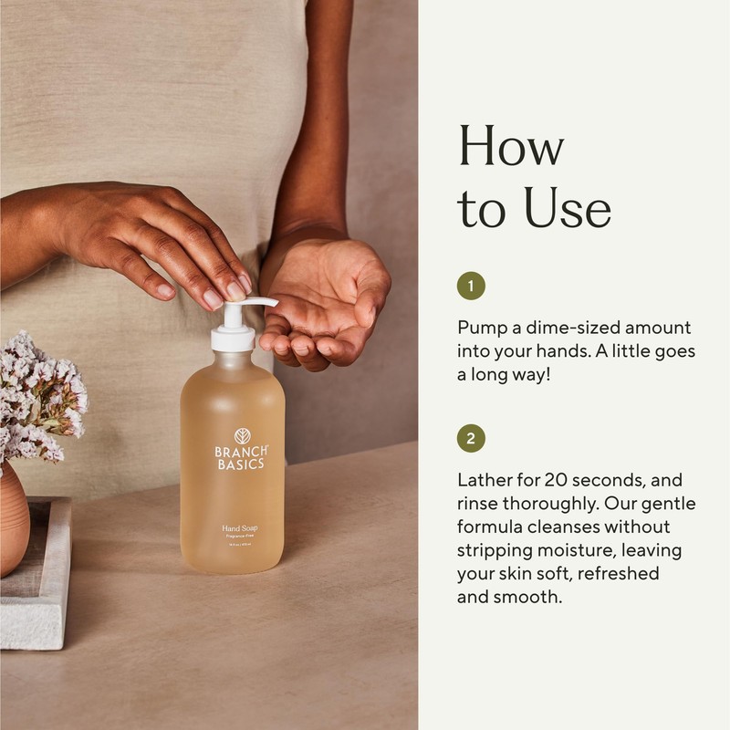 - REFILLABLE GLASS BOTTLE: Our beautiful, durable glass bottle is designed to elevate your daily hand-washing routine. Made from BPA-free glass, it’s a stylish and sustainable alternative to plastic. Simply refill with Branch Basics Gel Hand Soap Refill (sold separately) to reduce waste.