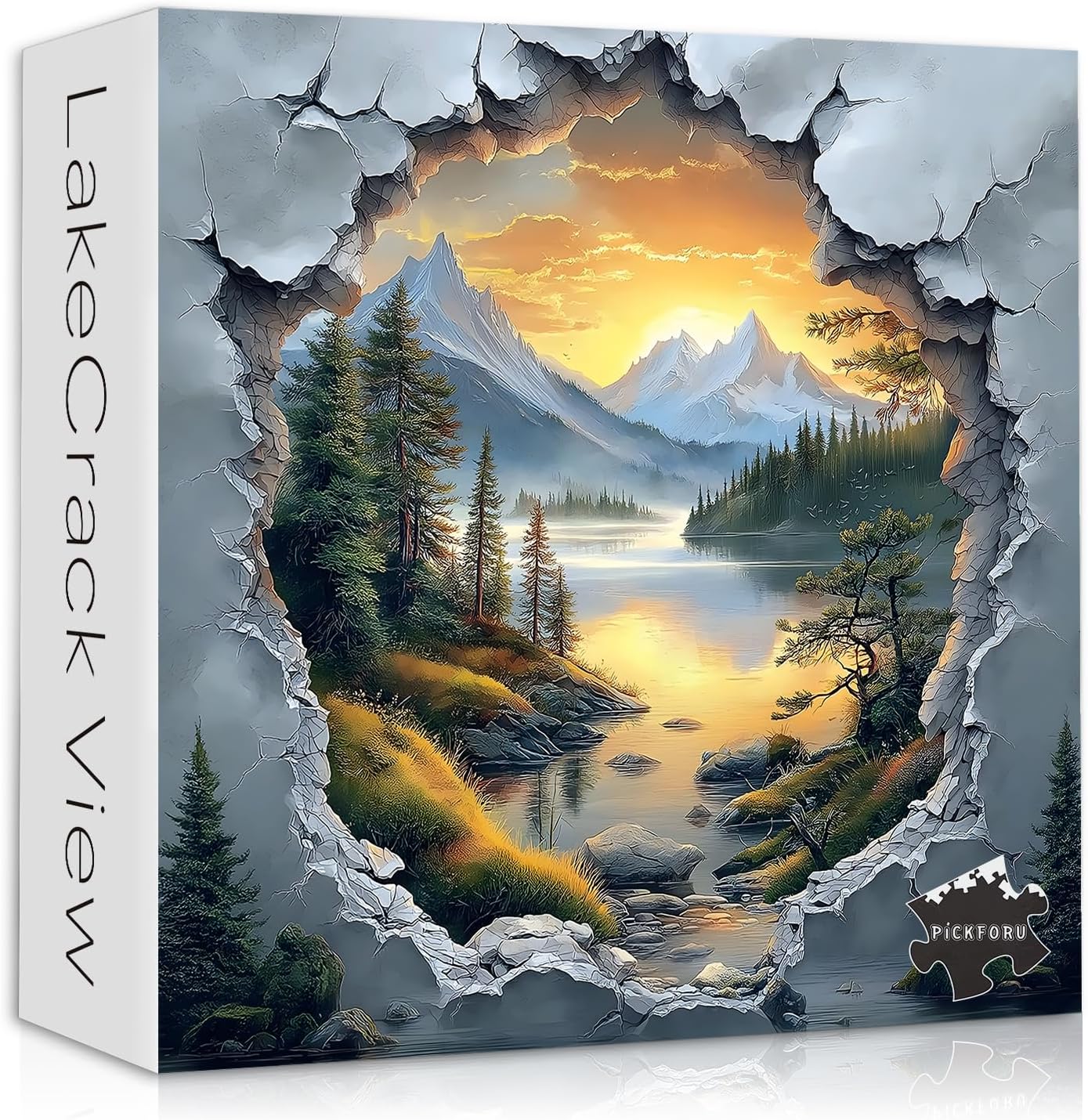 Mountain Lake Puzzles for Adults 1000 Pieces, Nature Forest Art Sunset Landscape Tree Puzzle Scenery, Unique Plant Scenic Challenge Puzzles for Adults
