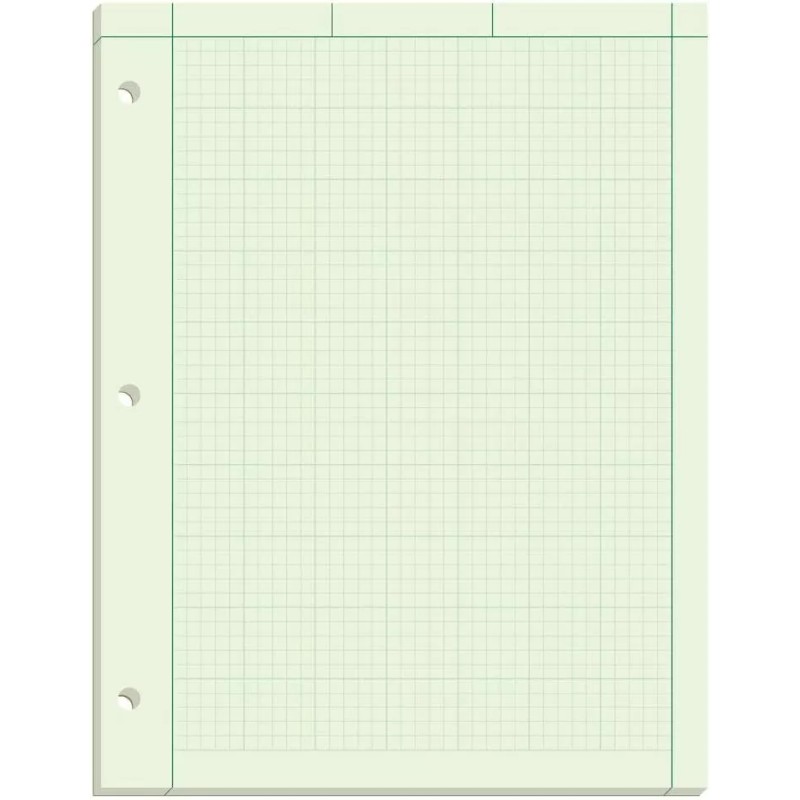 5 Squares per inch. 8-1/2" x 11". Glue top. 3-Hole punched. Green tint paper. 100 Sheets.