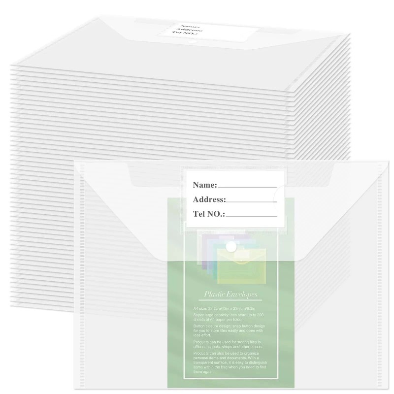 Package Contains: you will receive 108 plastic envelopes folders measuring 13.1 x 9.3 inches perfect for letter/A4 size paper and other small item storage