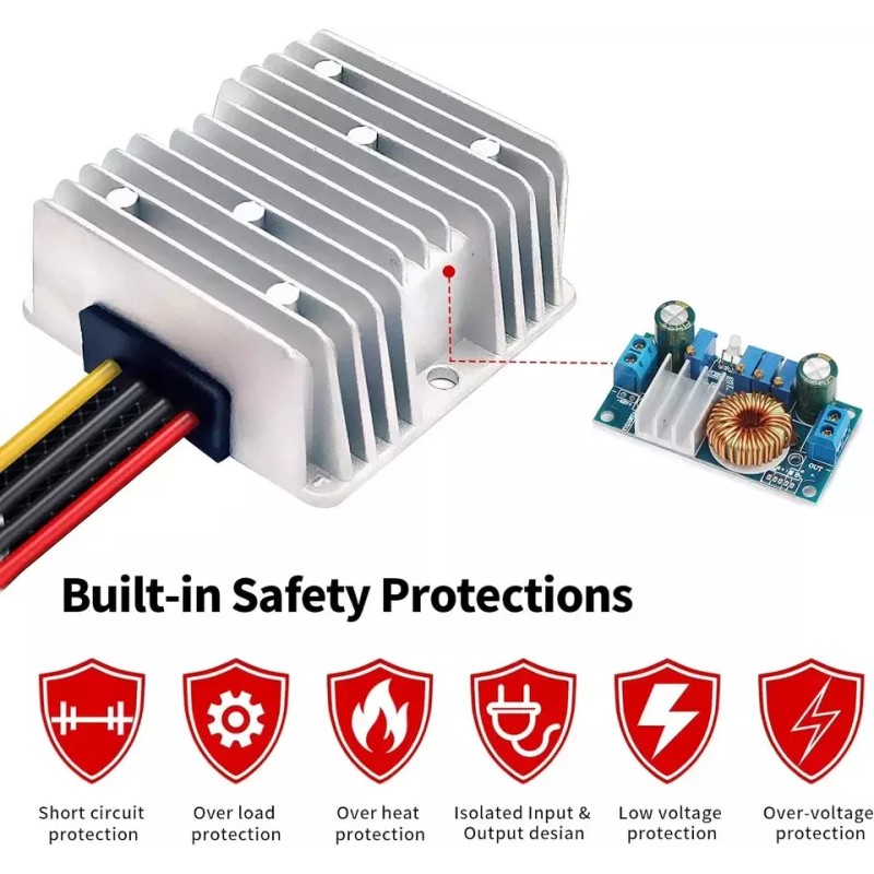 - Input Voltage: 18V nominal, accept(18V-36V) range; Output Voltage: DC 12V 15A 180W.