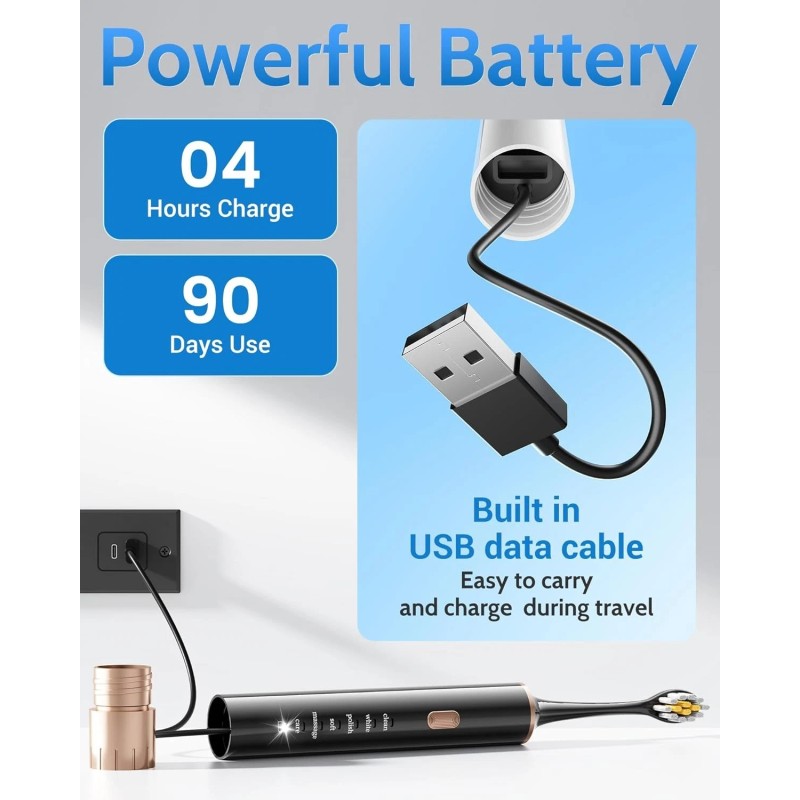Branded 2 Pack Electric Toothbrush Sonic Toothbrush USB Rechargeable 12 Heads 6 Modes