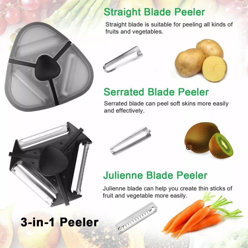 Branded 3 in 1 Stainless Steel Kitchen Peeler Potato Fruit Vegetable Cutter Corer Slicer