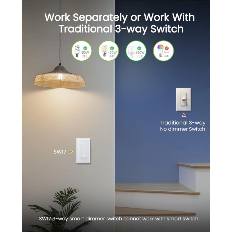 This 3 way dimmer switch works with Amazon Alexa and Google Assistant, so you can control your light using simple voice commands. Free hands by using dimmer light switch and enjoy the convenience moment.
