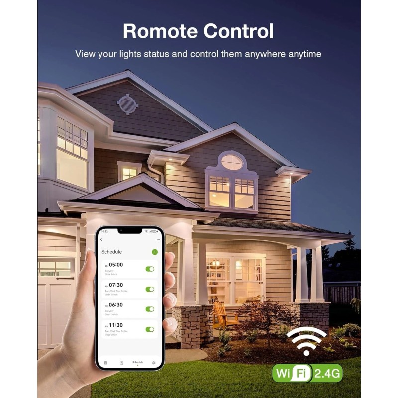 Create customized schedules to light up your house automatically and remotely control them from anywhere anytime. Set your porch light to turn on 30 minutes after sunset and turn off 25 minutes before sunrise.