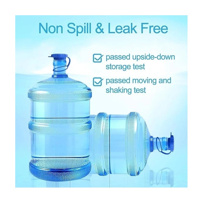 - The product is a set of 5 reusable 5-gallon water jug caps made of silicone and plastic. They are designed to be leak-proof and suitable for use in offices and kitchens. The caps come in a blue color and include a cup holder for easy access. With a top loading style, these caps are suitable for hot and cold water dispensers and offer features for hot water safety. Made by a branded manufacturer in China, these caps are a practical and cost-effecti
