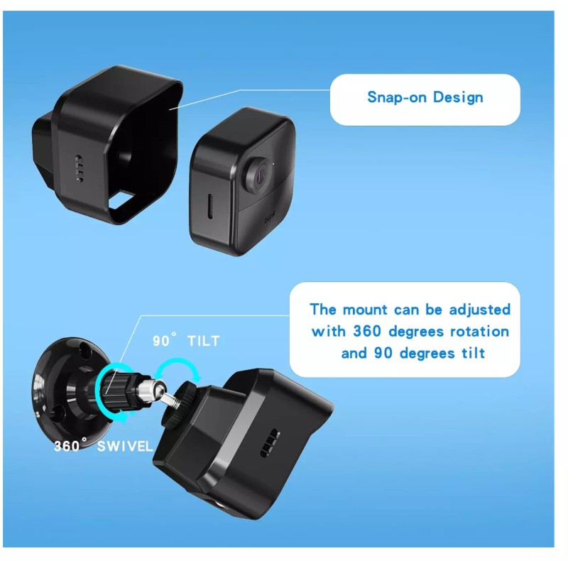 You will receive a flexible rotation with 360° swivel and 90° tilt, allowing you to adjust the camera to point anywhere you want with any angle.