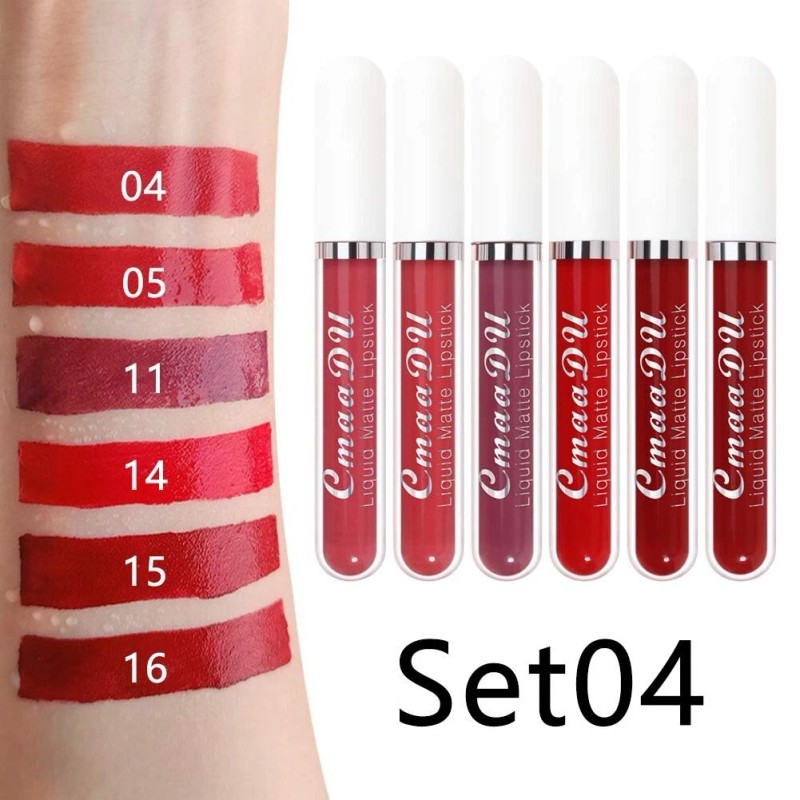 6Pcs Matte Liquid Lipstick SetWe have carefully combined 4 groups of the most popular lip gloss colors for girls, you no longer have to struggle to choose a color, our 4 groups of 6 colors with lip gloss is enough to fully meet all the needs of girls.