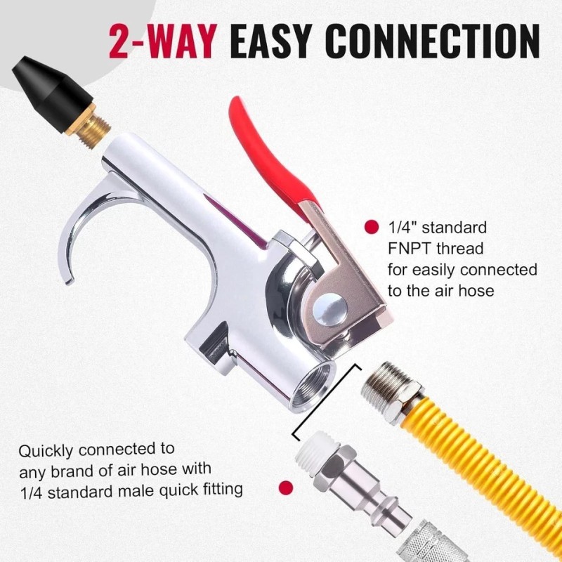 Branded Air Blow Gun, Kit Professional 2-Way Connection Air Nozzle Blow, Gun with Rubber