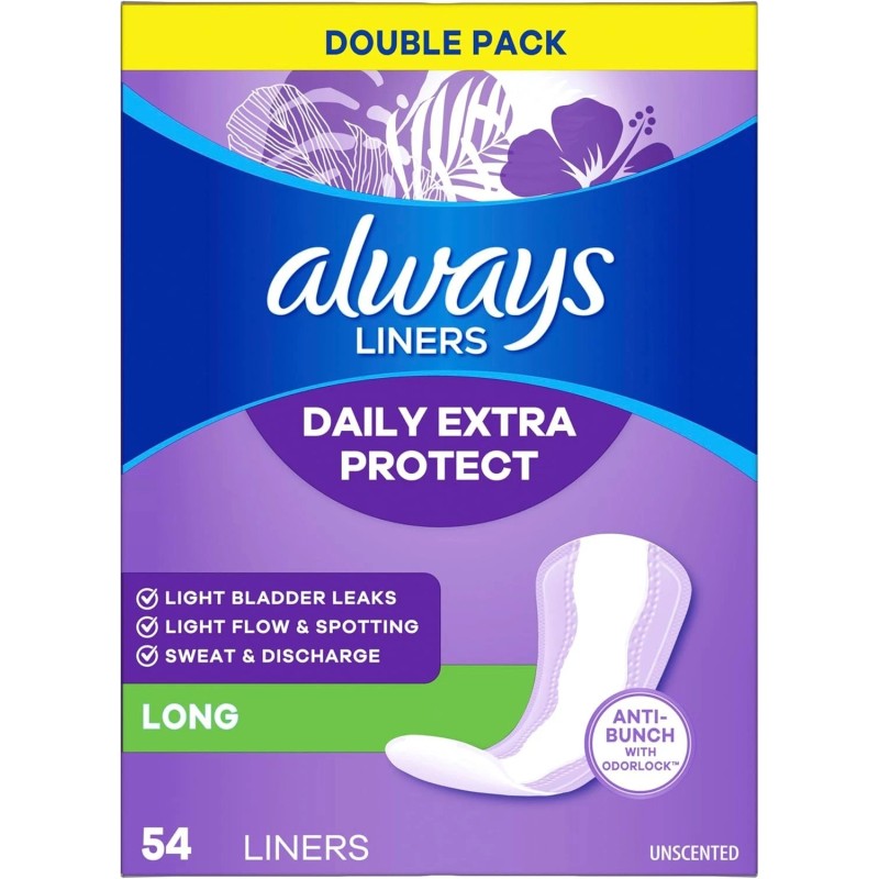 Branded Always Daily Extra Protect Liners, Long Length, Unscented Panty Liners, 108 Coun
