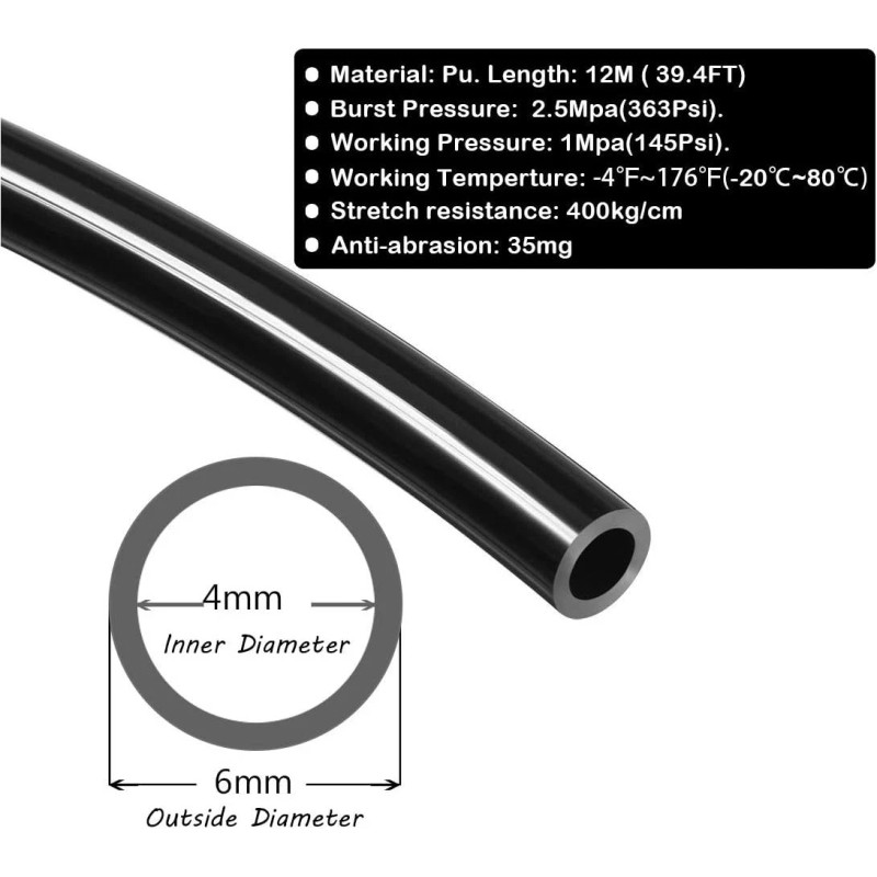 · PU Tubing Pipe Size: 6mm (Outside diameter) 4mm (Inside diameter) , Package Total Length:40 Feet (12meters)