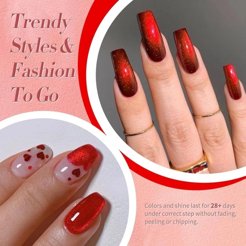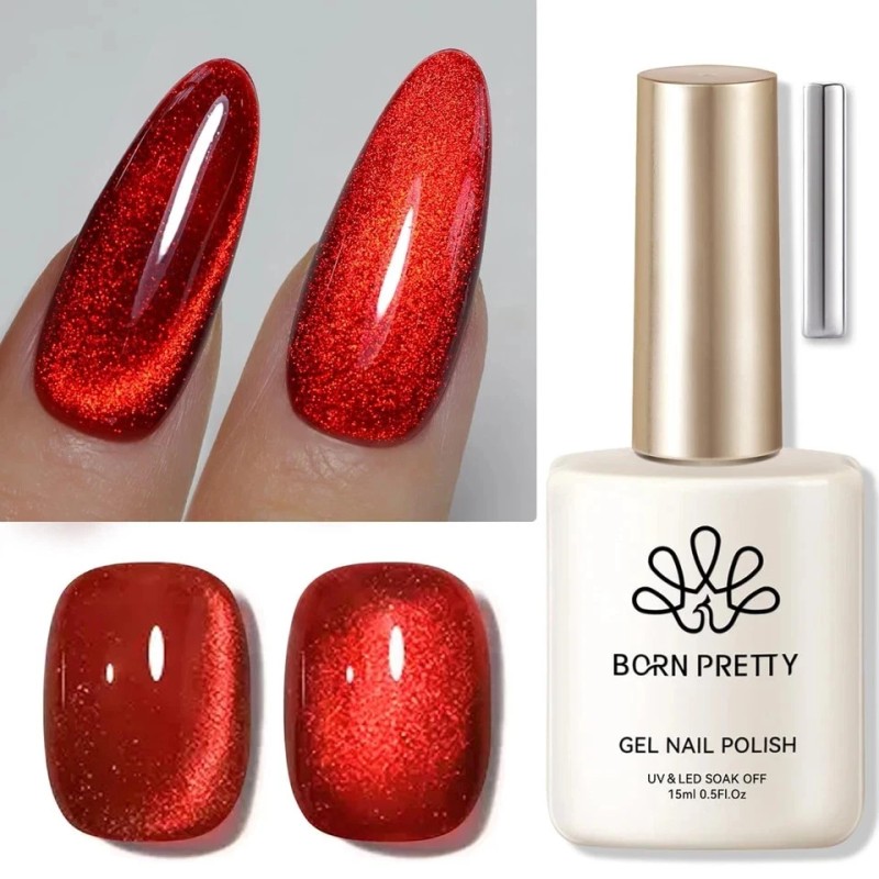 - PACKAGE CONTENTS: BORN PRETTY red glitter cat magnetic eye gel nail Polish.Cat eye gel nail polish kit includes 1 color 15ml / 0.5 fl.oz gel nail polish.The sparkling color was carefully mixed with gorgeous glitters for a stylish glitter finish.The cat eye gel can be combined with different bacse colors arbitrarily, you can get different colors nail art.You can use different base coat to creat different sytles.