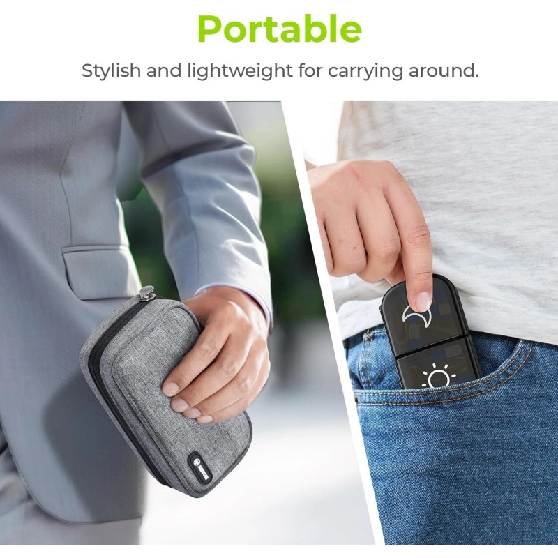 - Super Portable: Inner pill organizer 2 times a day can fit into your pocket or purse without being bulky, and keep your daily medicine, supplements always on hand. And this portable gray pill case can protect your medication privacy