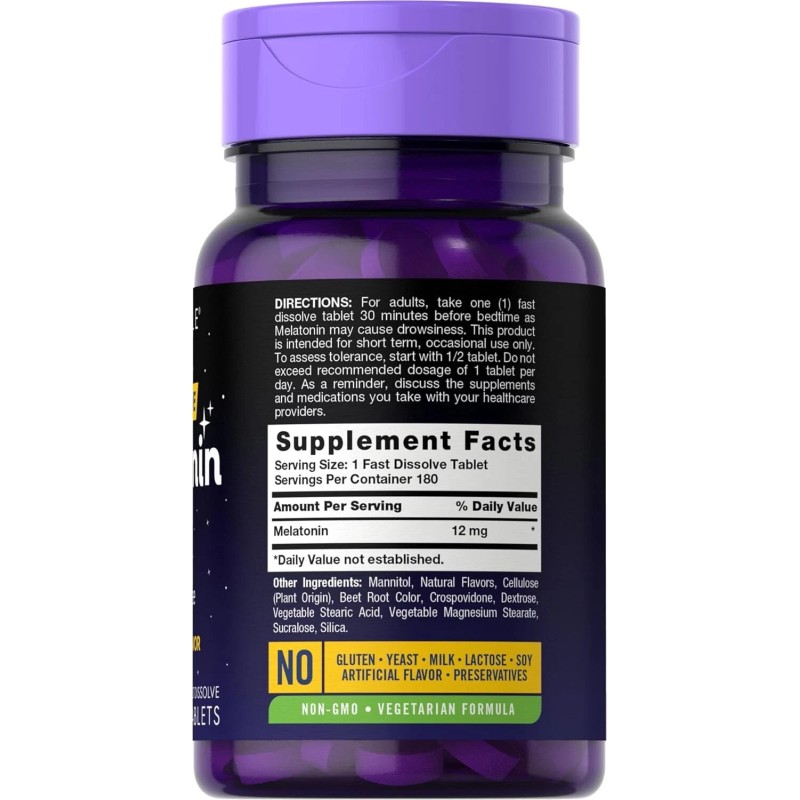 Carlyle Melatonin 12 Mg Fast Dissolve 180 Tablets | Drug Free | Natural Berry Fl