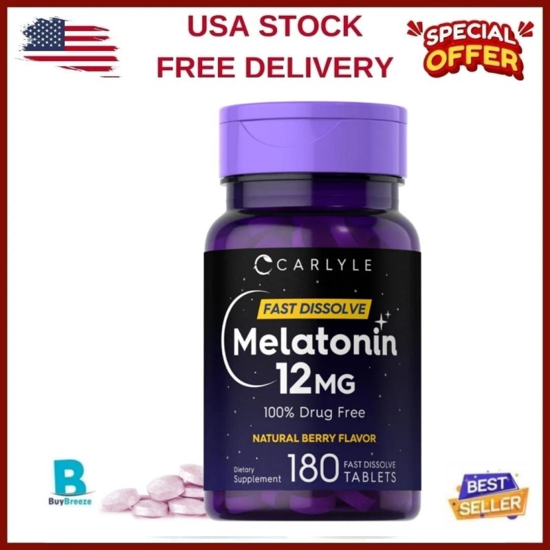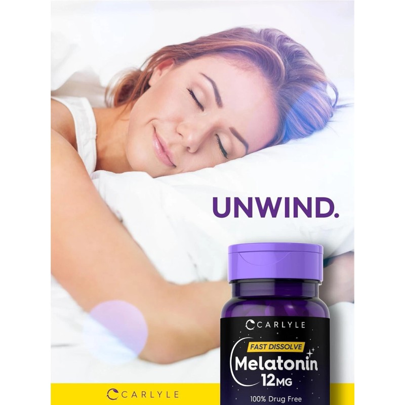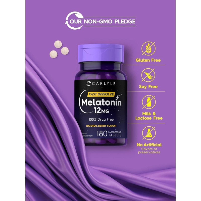 Branded Carlyle Melatonin 12 Mg Fast Dissolve 180 Tablets | Drug Free | Natural Berry Fl