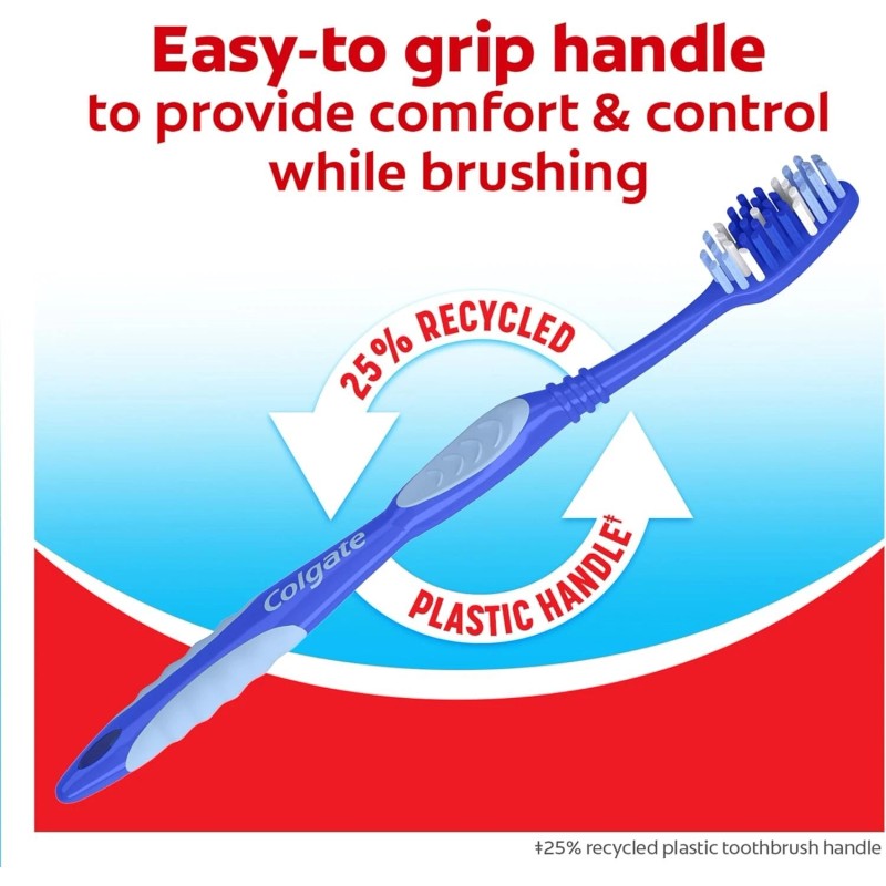 - Brush your teeth with cleaning power using the Colgate Extra Clean Full Head Medium Toothbrush Pack. This medium toothbrush is made with circular power bristles to help remove surface stains. The cleaning tip features bristles on these adult toothbrushes effectively clean teeth, while a tongue cleaner also helps clean the mouth. With an easy-to-grip handle, this medium bristle toothbrush provides comfort and control while brushing. Get extra clean teeth with the Colgate Extra Clean toothbrush. Made for deep cleaning, this bulk toothbrush pack boosts a beautiful smile with every brush. Unique cleaning tip bristles provide cleaning power to clean teeth. This manual toothbrush makes brushing a breeze. And remember to change your toothbrush every 3 months! At Colgate, we make products that promote healthy smiles. Not only because having a healthy smile is important to your overall health, but because when you have a healthy smile, you actually smile more – and that's a powerful thing. Smiles are the simplest form of optimism, something we need now more than ever. That's why we're championing optimism – we are committed to creating a healthier planet and working every day to create healthy smiles for all.