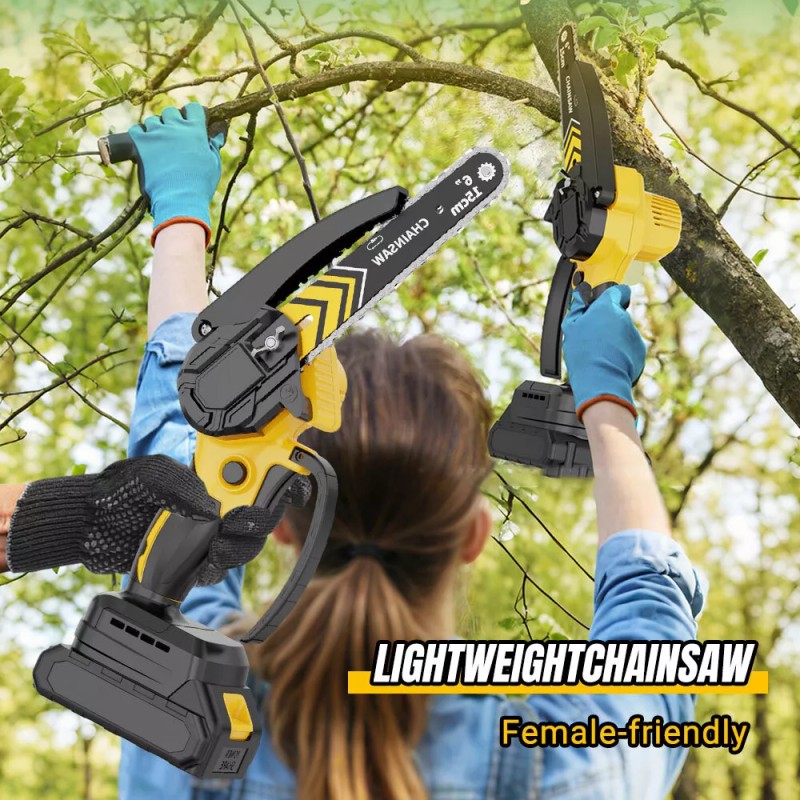 - ✅【One Hand Operated Chain Saw】Portable hand chainsaw weighs only about 2 Lbs. small in size, comfortable to hold, and lightweight places. The handheld chainsaw can be used with one hand and not easy to fatigue for long-term use. Suitable for home use, the elderly, women, beginners, and people with weak arms can also operate it easily.. and the mini electric chainsaw is that it is easy to carry around and fits into small spaces.