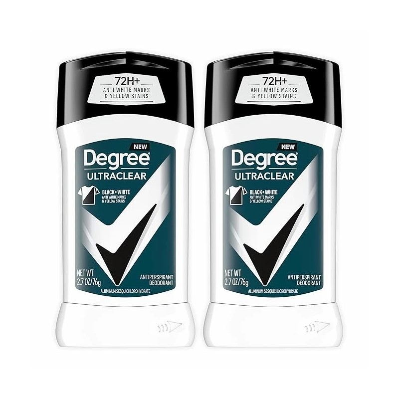 WHITE SHIRT, BLACK SHIRT, NO PROBLEM: Degree UltraClear Black+White Antiperspirant Deodorant delivers 72-hour sweat and odor protection with anti-white marks and anti-yellow stains technology