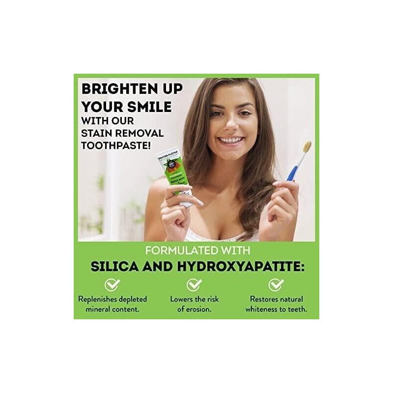 - STAIN REMOVAL Dr Plotka’s stain removal toothpaste is the best whitening toothpaste, using no harsh chemicals to produce that bright smile! Silica and Hydroxyapatite re-mineralize the teeth, which lowers the risk of erosion and restores your teeth to their natural whiteness. Our custom formula contains No glycerin, No sugar, No artificial dyes, flavors, preservatives, or artificial binders.